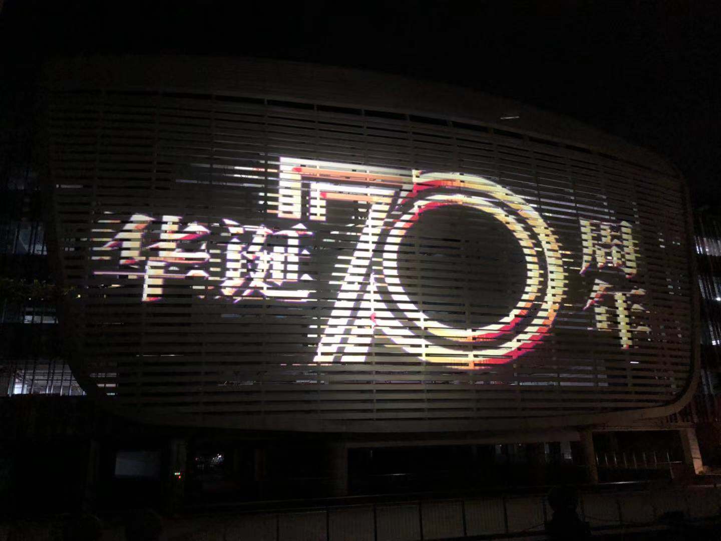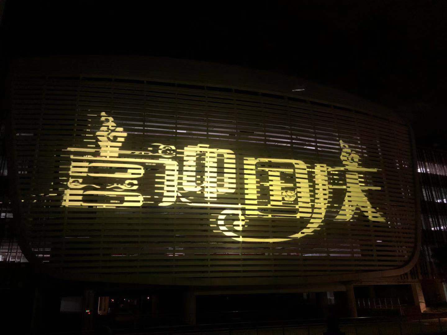 珠海橫琴凱悅酒店外墻投影,使用2臺(tái)LED影像燈超短焦(1500W),型號(hào):LightWin-PGF8000(定制),單臺(tái)投影畫面20*25米。超大畫面拼接